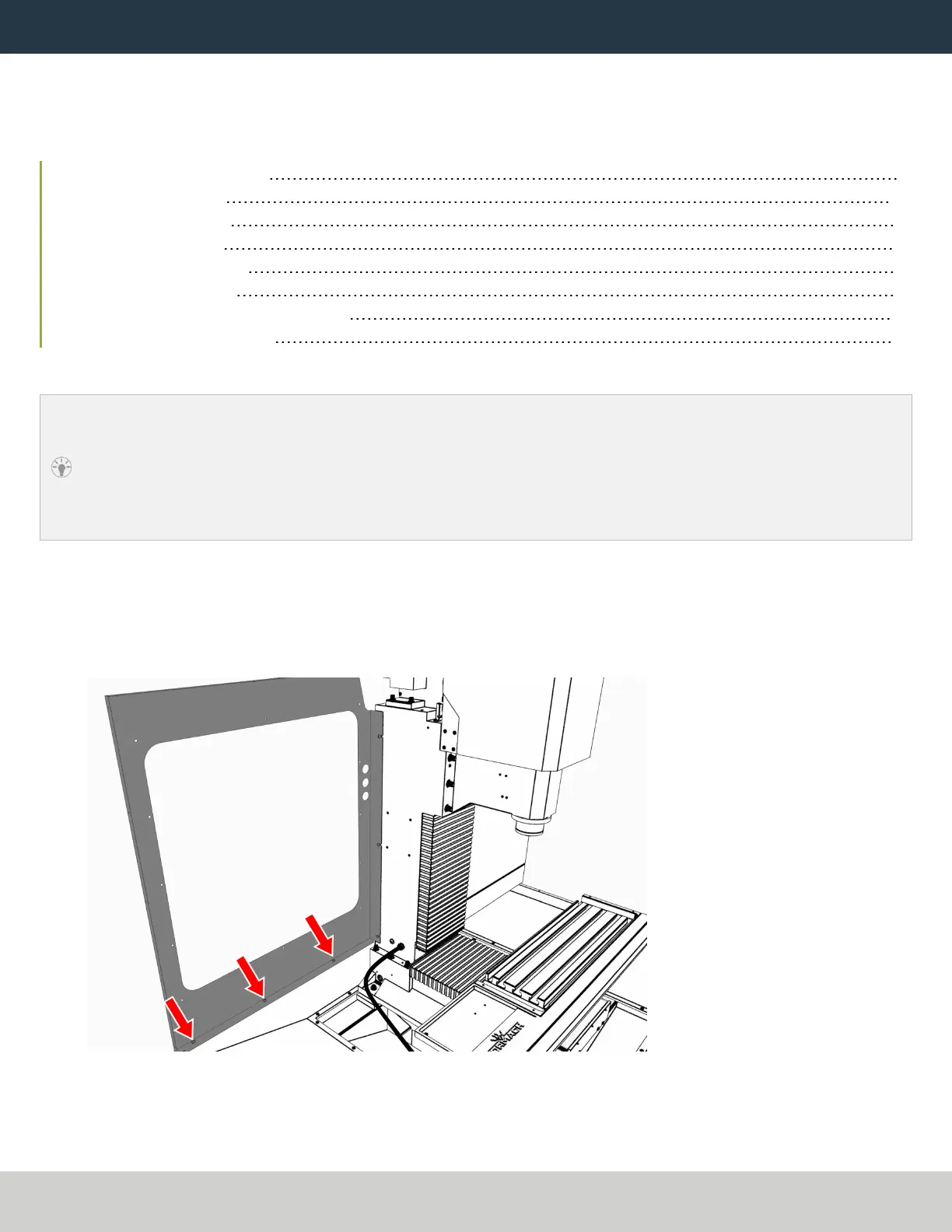 Tip! To install the enclosure panels, work from the left to the right of the machine.
