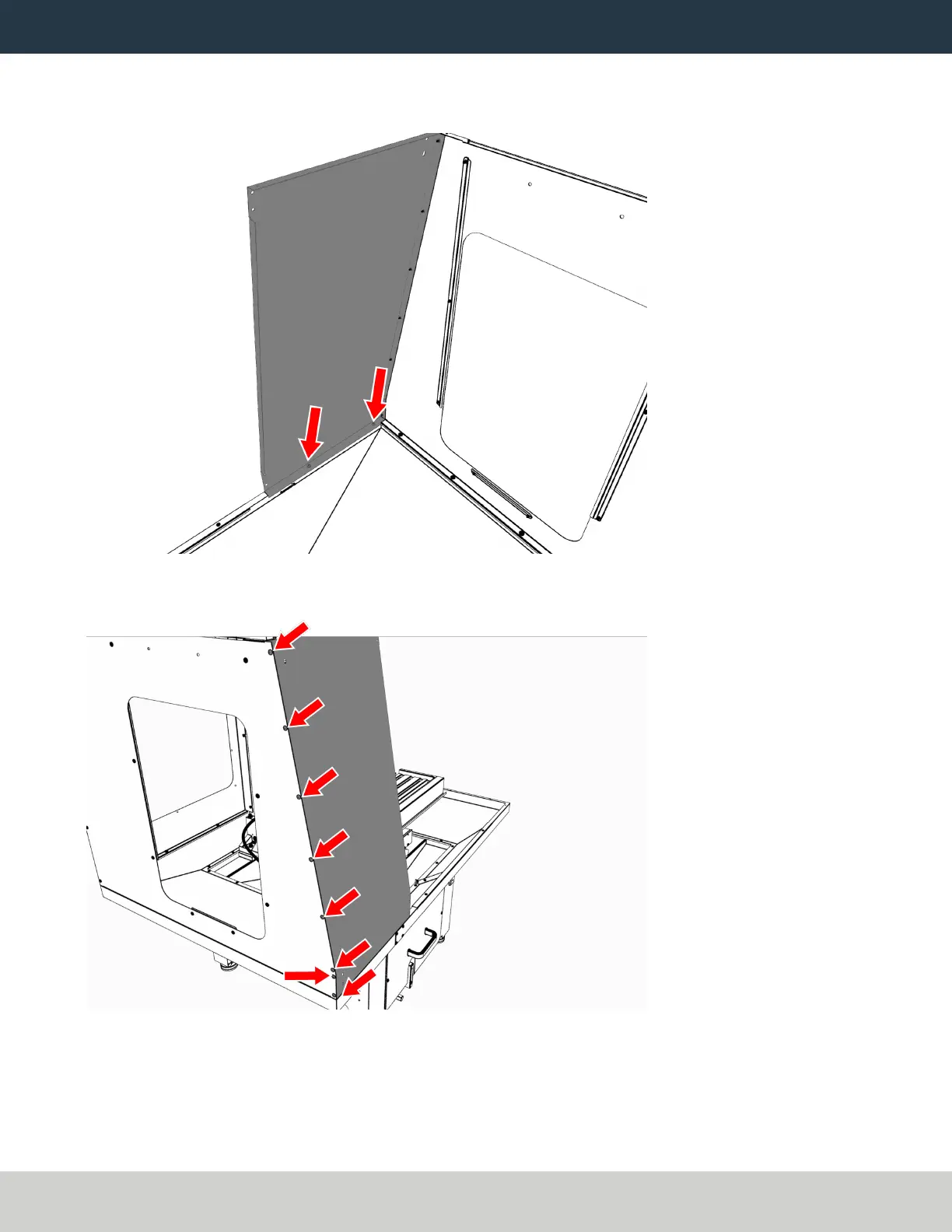 2. Attach the left front panel to the left side panel with eight M5 × 0.8 - 10 screws.