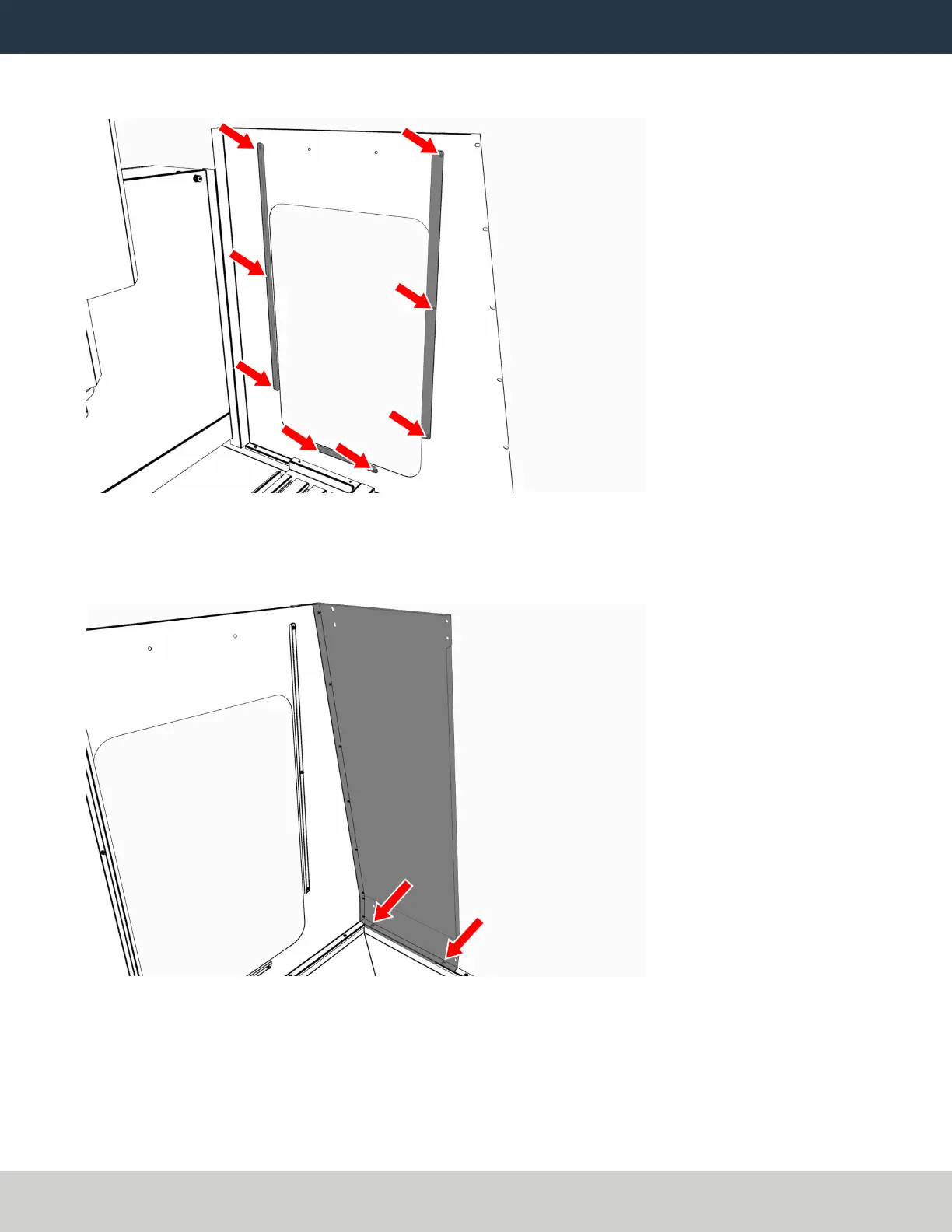 3. Loosely attach one horizontal window retainer to the bottom of the right side panel's window opening with