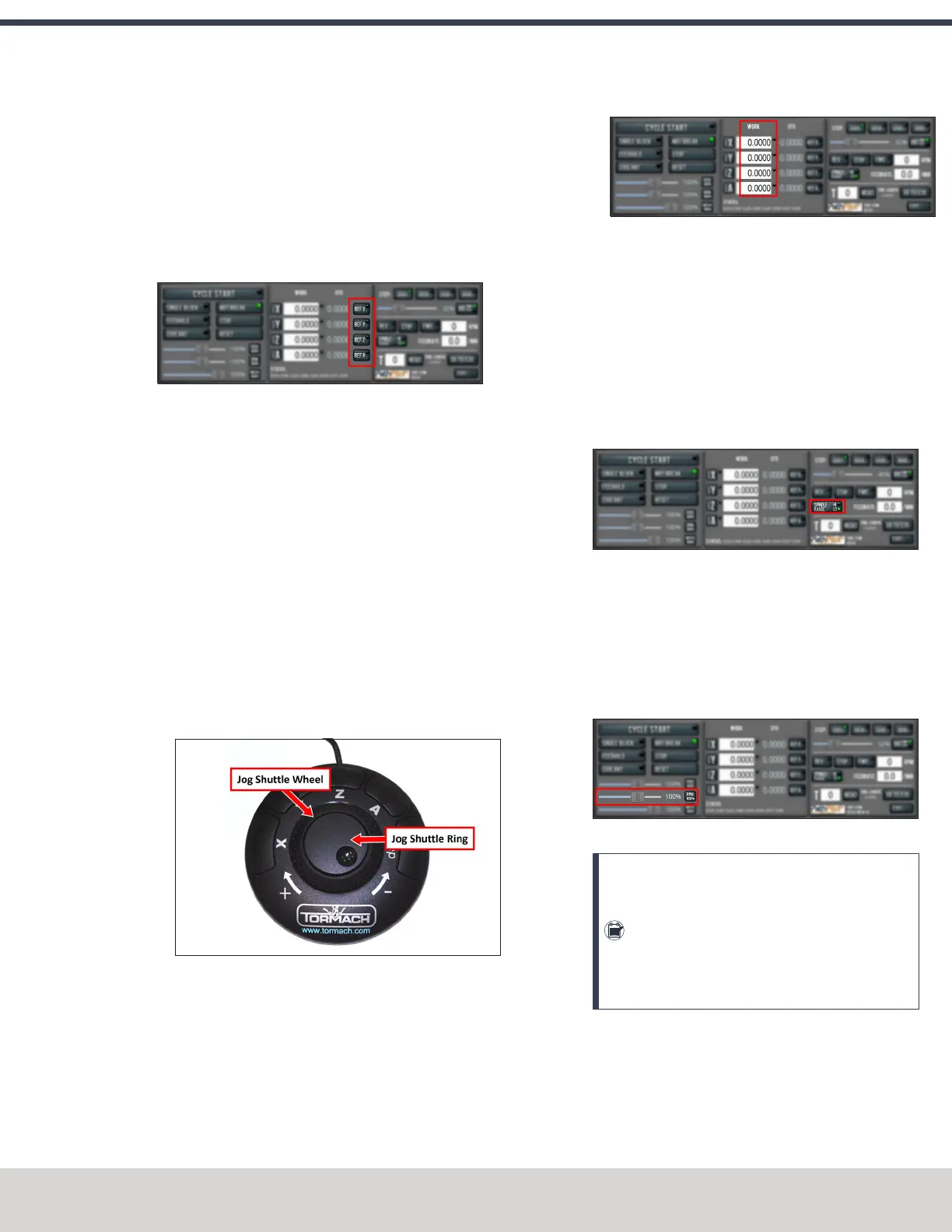 l Press any axis button on the JogShuttle — X, Y, Z, or
