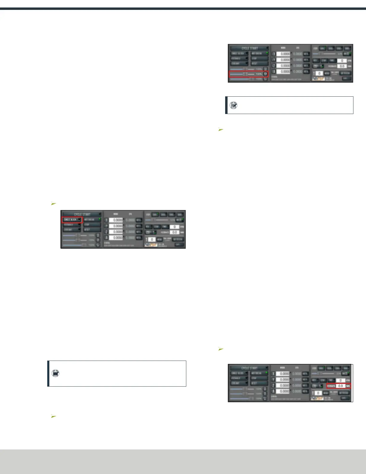 each line, motion is paused, and the Cycle Start button flashes.