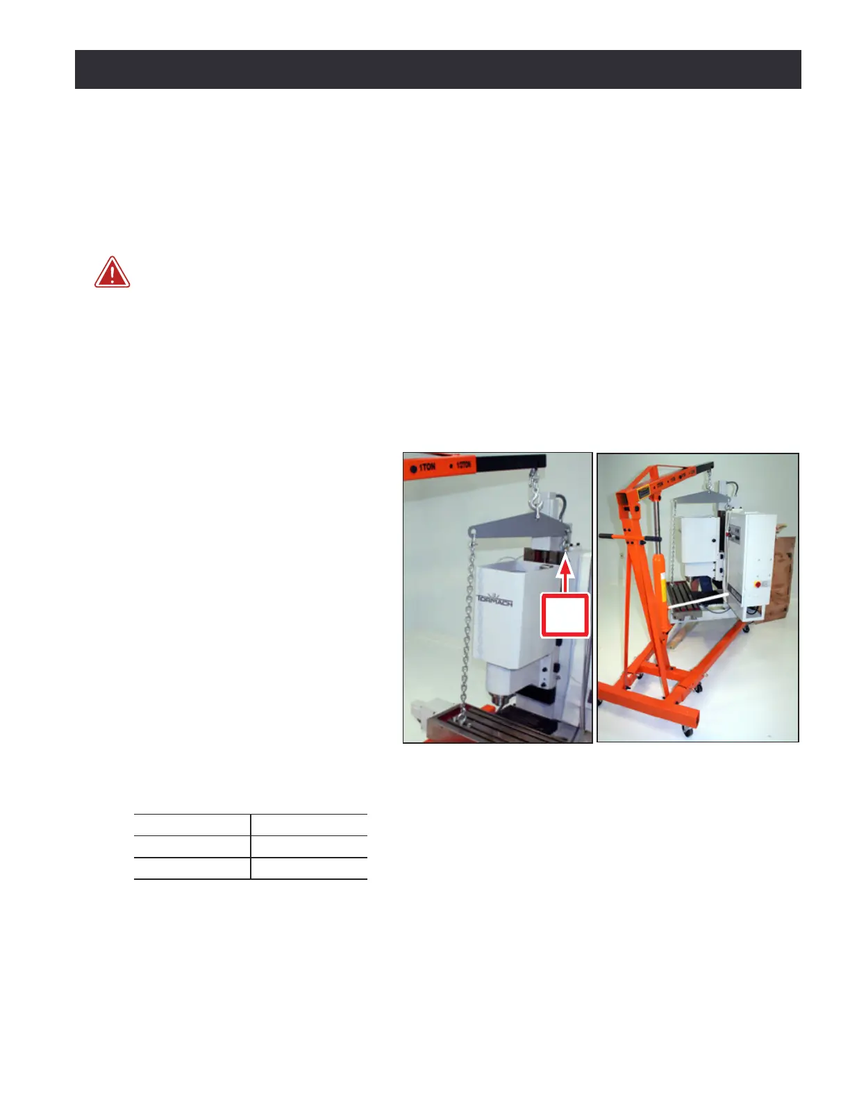 WARNING! Transport and Li Hazard: The transport, liing, and moving of PCNC mill should be