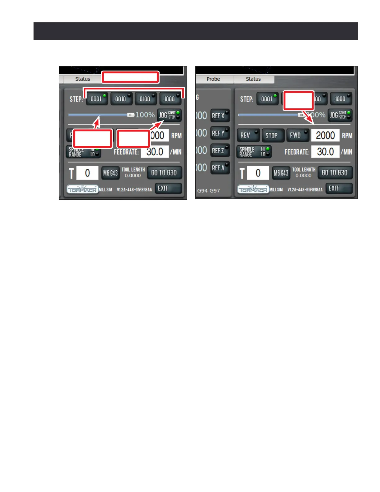 clockwise at the set RPM. These buons are unavailable when running a G-code program or in the