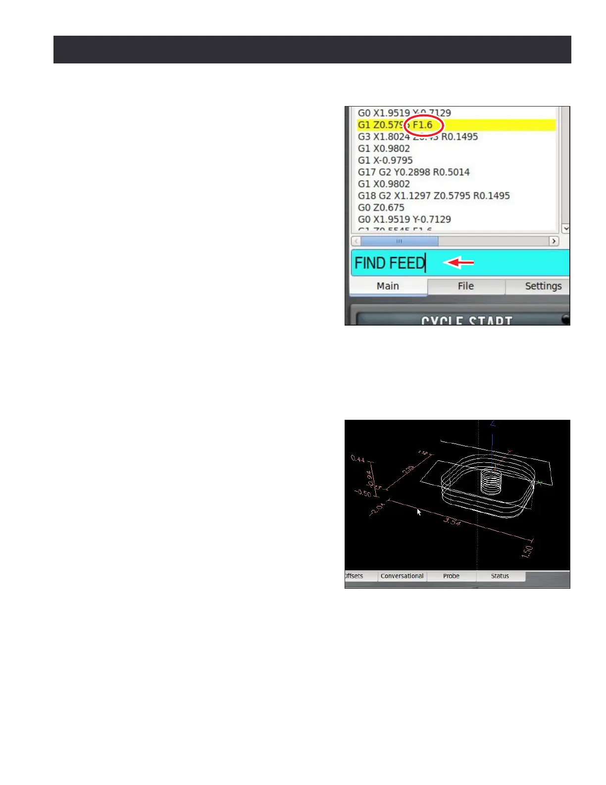 The FIND command simplies searching of a G-code le to verify speed and feed values and tool