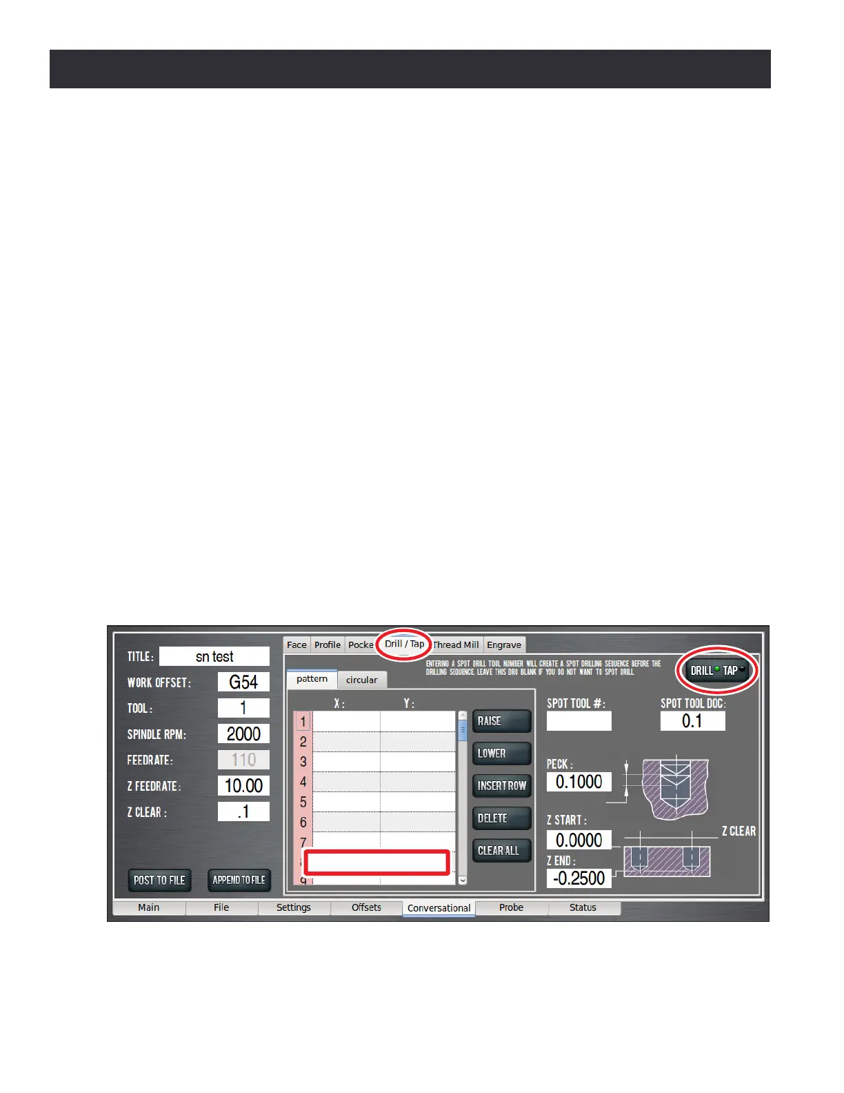 Drill/Tap provides a means to create a hole locaon list, then, based on DRO entries, congures an