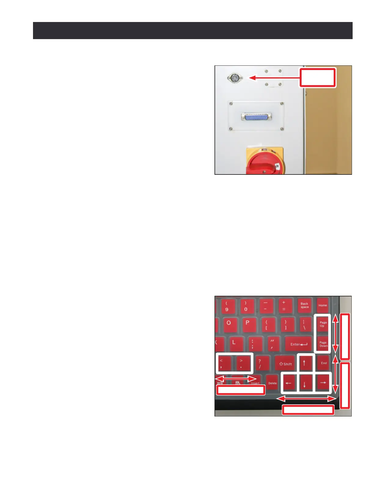 • The Page Up key jogs the Z-axis in the