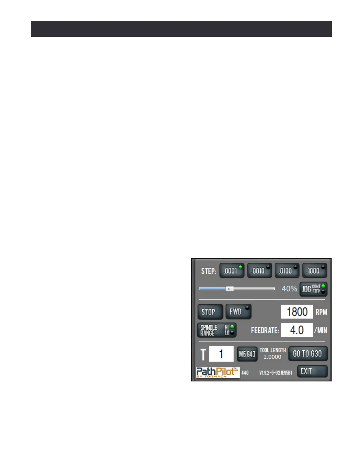 Status – The Status line displays the currently acve G-code modalies and the acve tool. A more