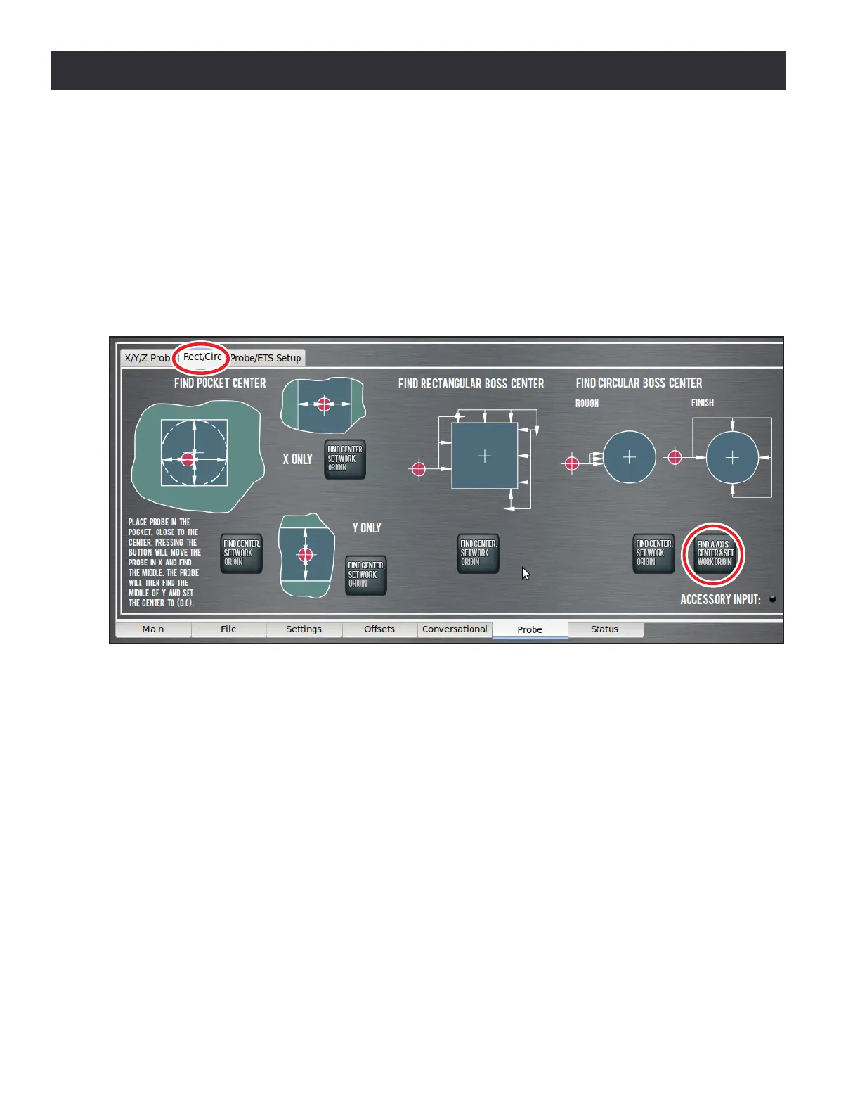 probe moves in both X and Y to nd the pocket center. The Find Center, Set Work Origin buons