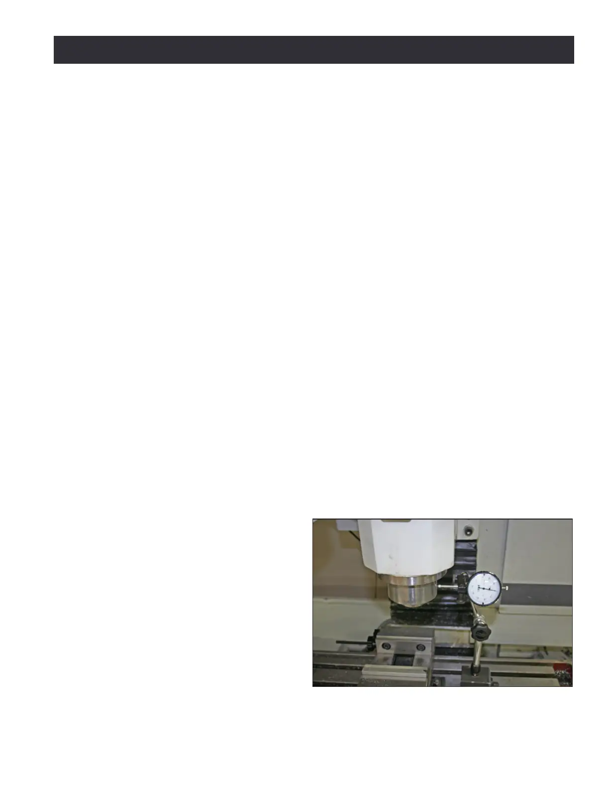 1. Mount a dial indicator to the mill table along the X-axis to the le of the spindle, with the p