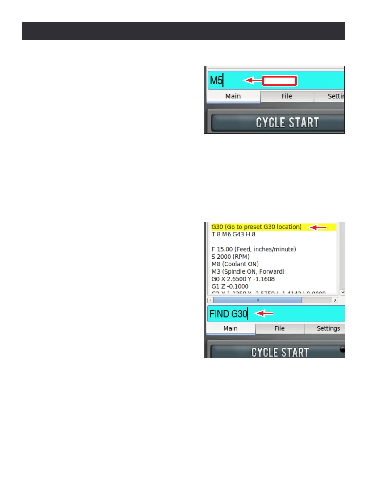 MDI has the ability to search text of a G-code le