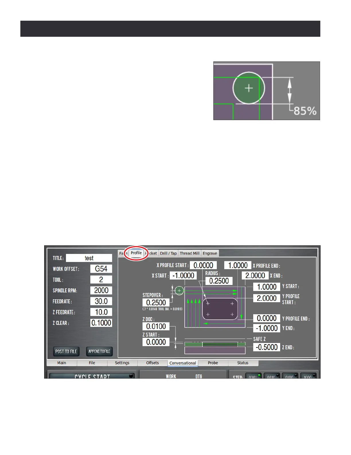 The rst Z pass will cut at Z Start – Depth of Cut adjusted. The last Z pass will cut at