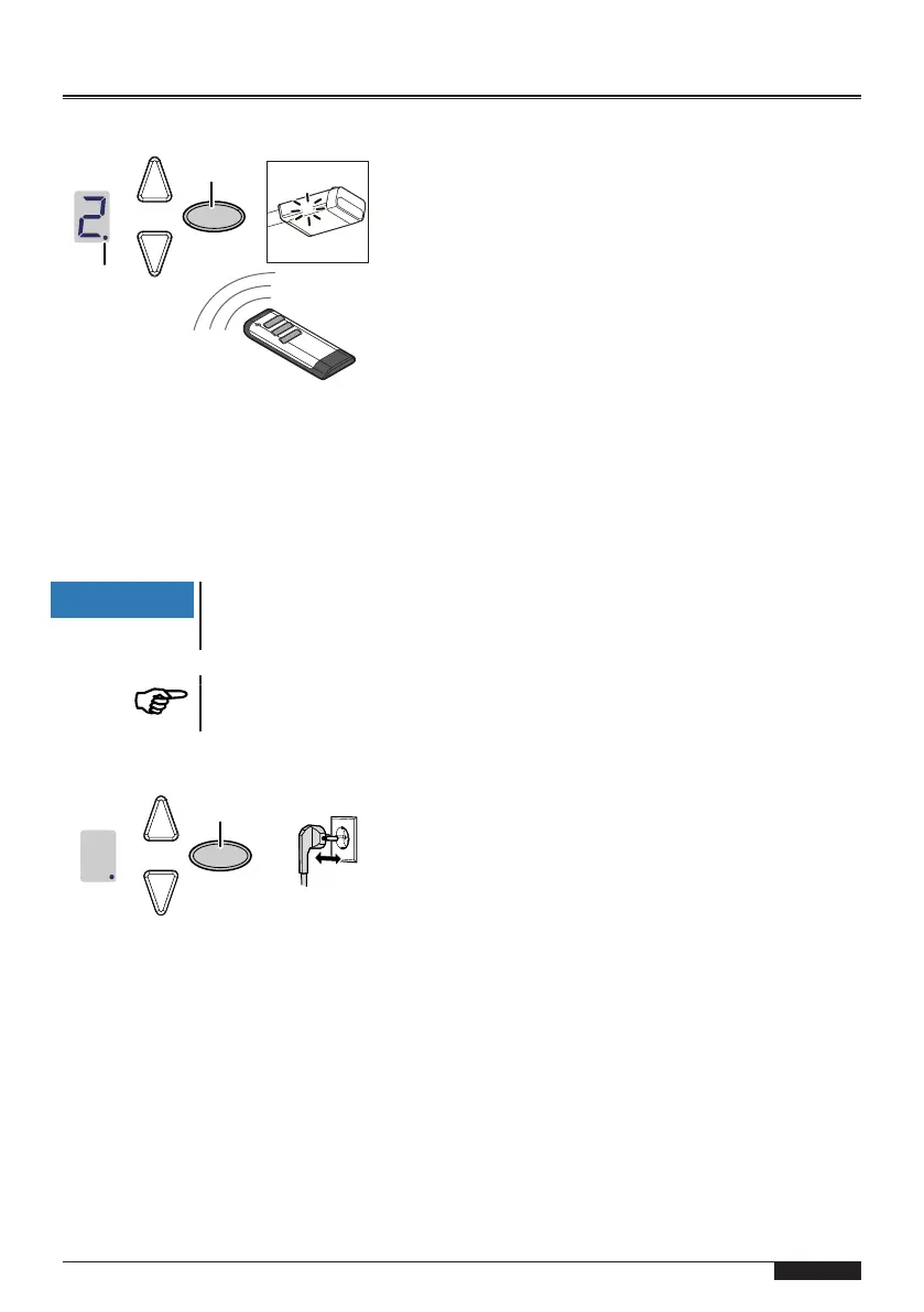 3. Zodra het cijfer uit gaat, kunt u de volgende handzender inleren (zie stap1).