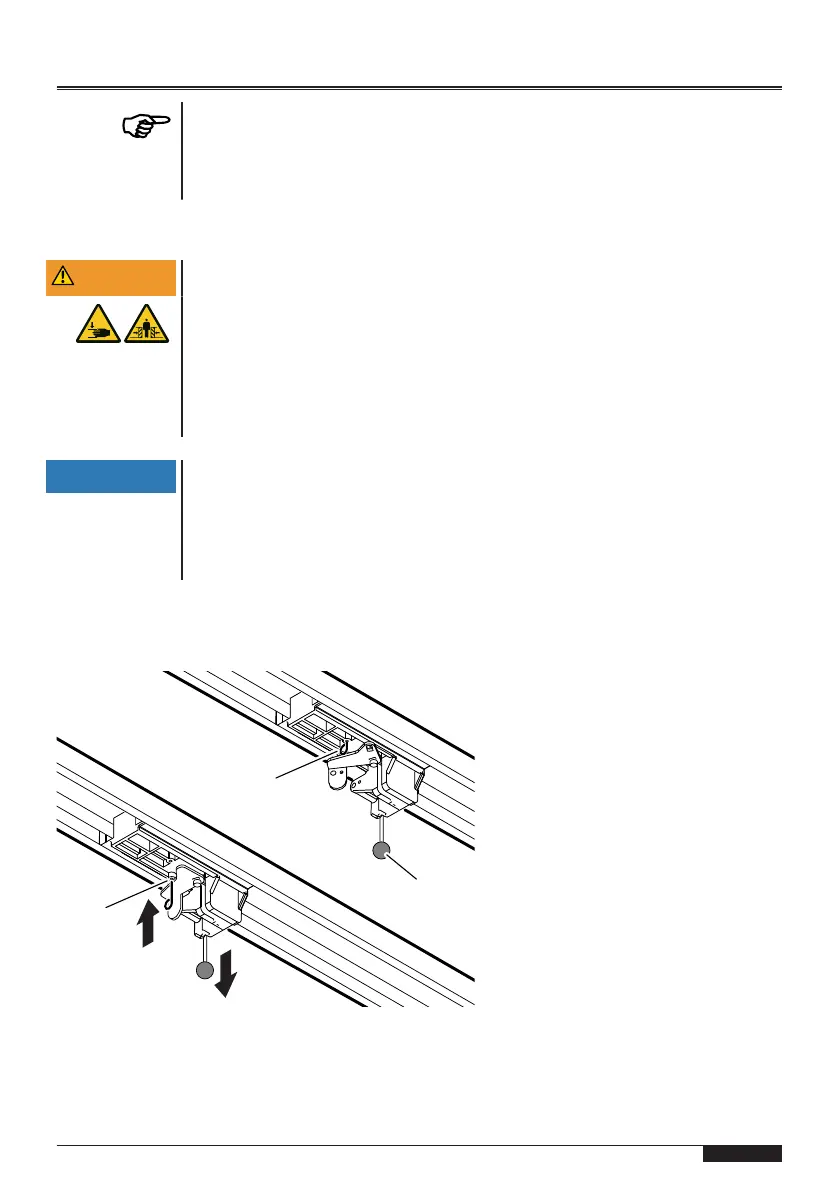 1. Voor het handmatig bewegen van de garagedeur trekken aan de trekknop(l)
