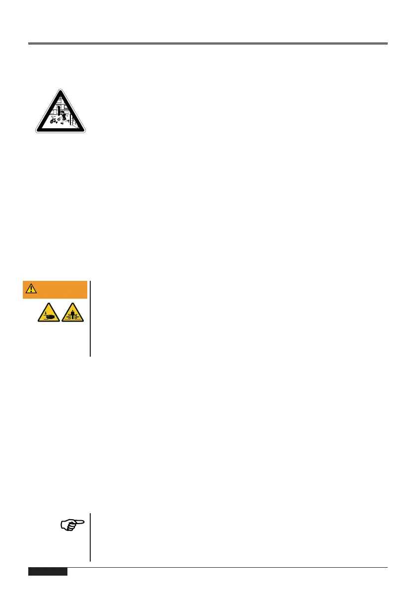 • Make sure that no persons or objects are in the travel path of
