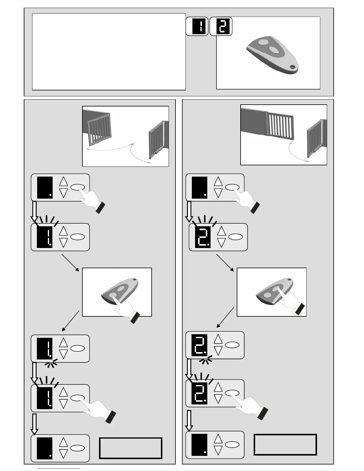 D Funk Start (1) einlernen, Start Gehflügelsteuerung (2)
