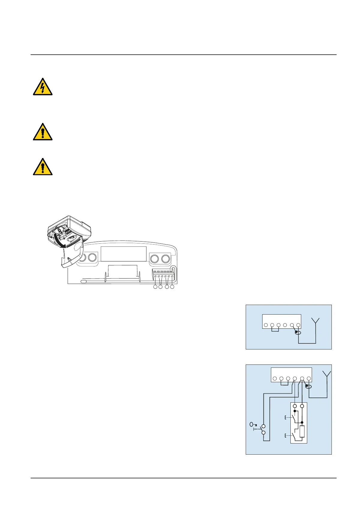 • Tilslut ikke spændingsførende ledninger. Tilslut kun potentialfrie knapper og relæudgange.