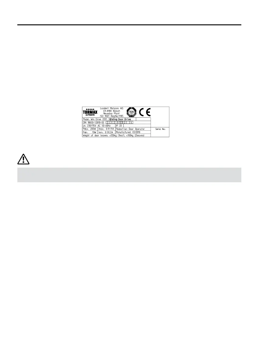 Product name, door drive: Win Drive 2201 Sliding Door Drive