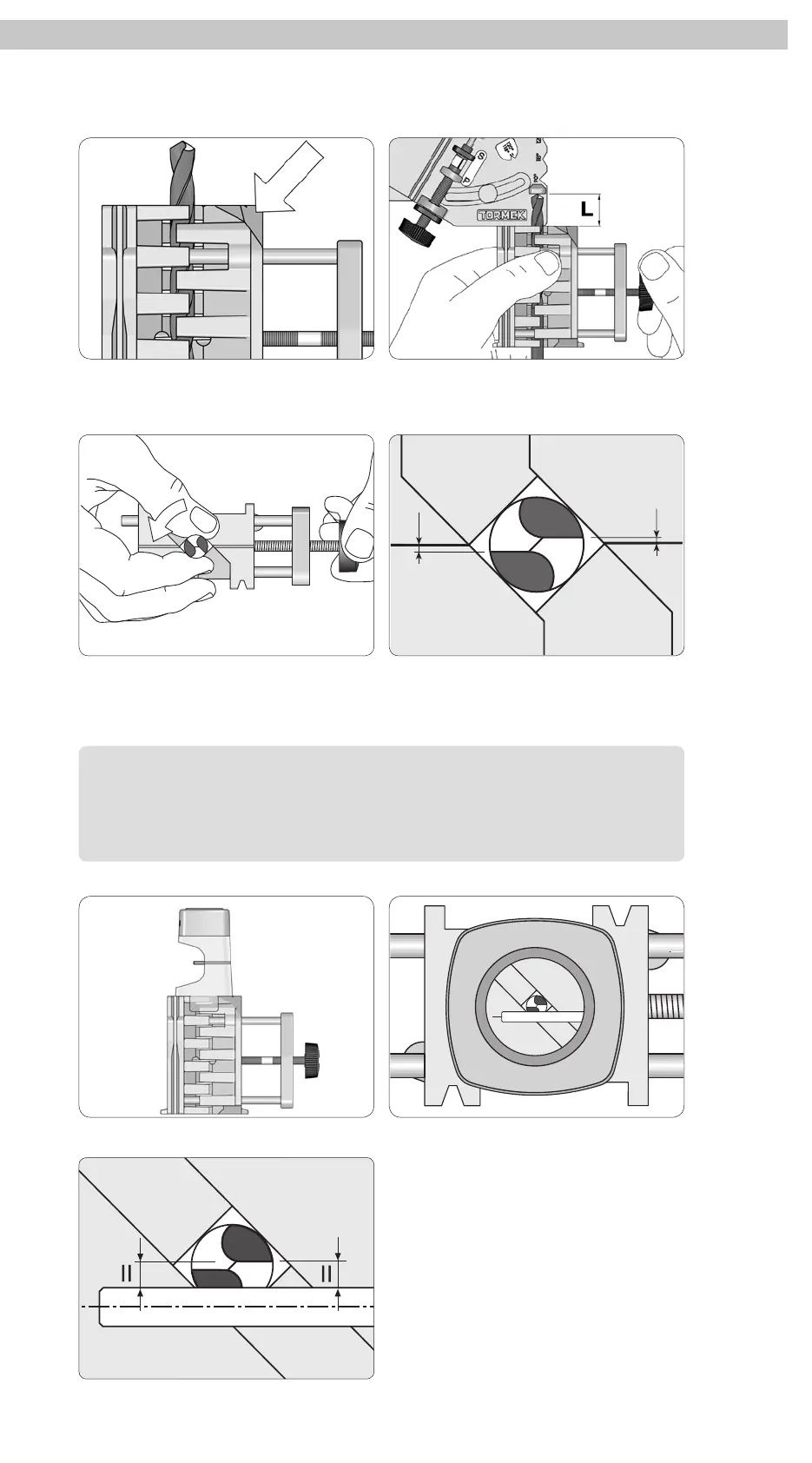to the horizontal lines on the Drill Holder. Tighten the wheel. The protrusion L does
