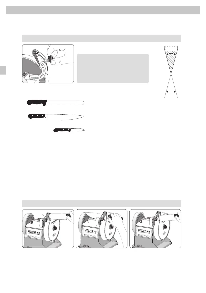 nému kotouči. Nůž posunujte rovnoběžně nad brusným kotoučem a použijte lehký tlak. Zajistěte, aby byl nůž