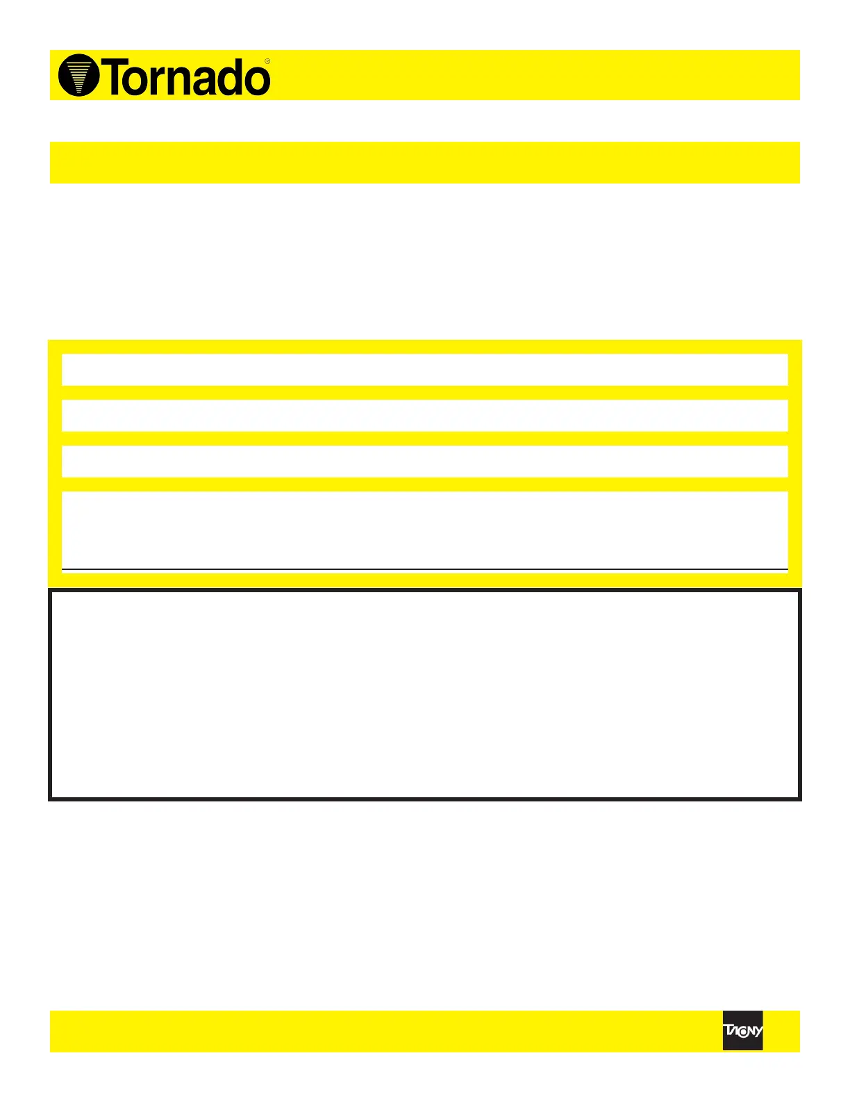 Tornado Industries, Inc. (Tornado) garantiza al consumidor nal que los productos Tornado no tendrán defec-
