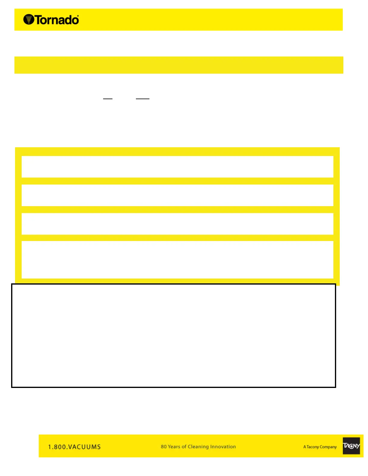 3. La garantie commence à la date de la vente au consommateur ou, à la discrétion de Tornado, 6 mois après que le concessionnaire