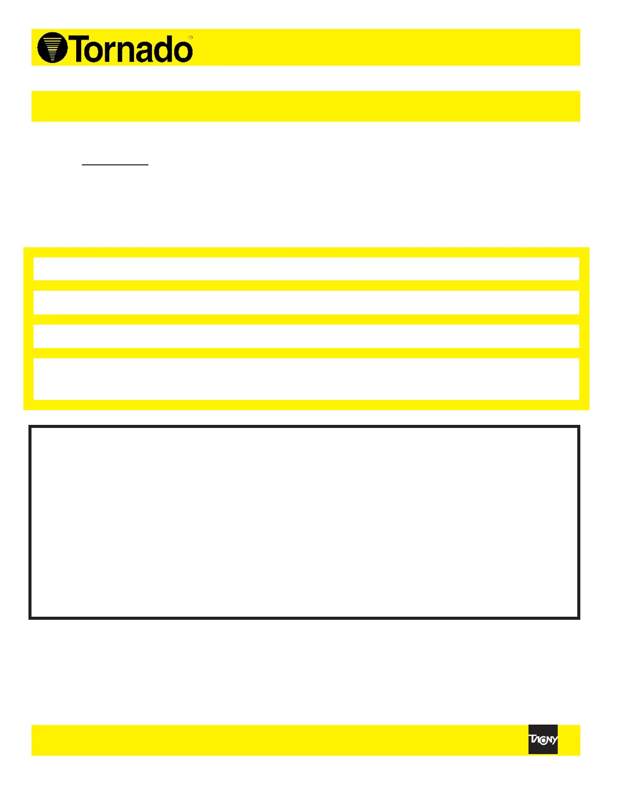 3. Warranty starts from the date of sale to the consumer or, at Tornado’s discretion, 6 months after