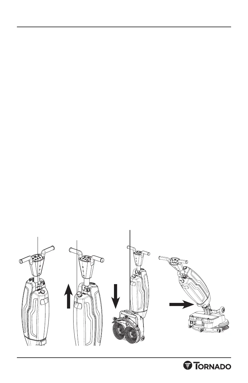 7. Use el mango de la base para poner la máquina en el modo de trabajo,