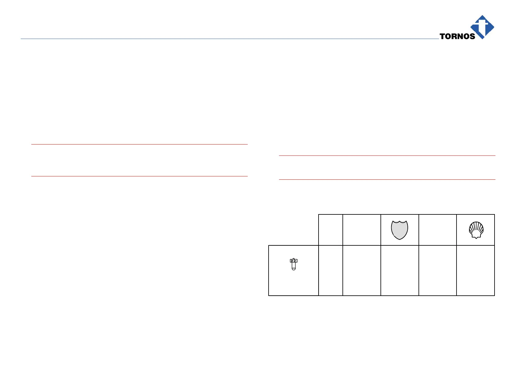 Oil: acc. to the table below.
