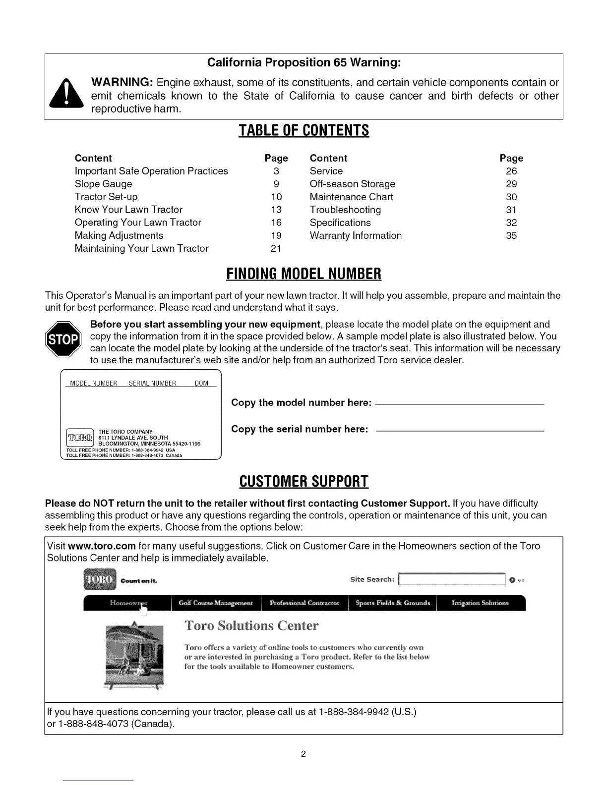 Visit www.toro.com for many useful suggestions. Click on Customer Care in the Homeowners section of the Toro