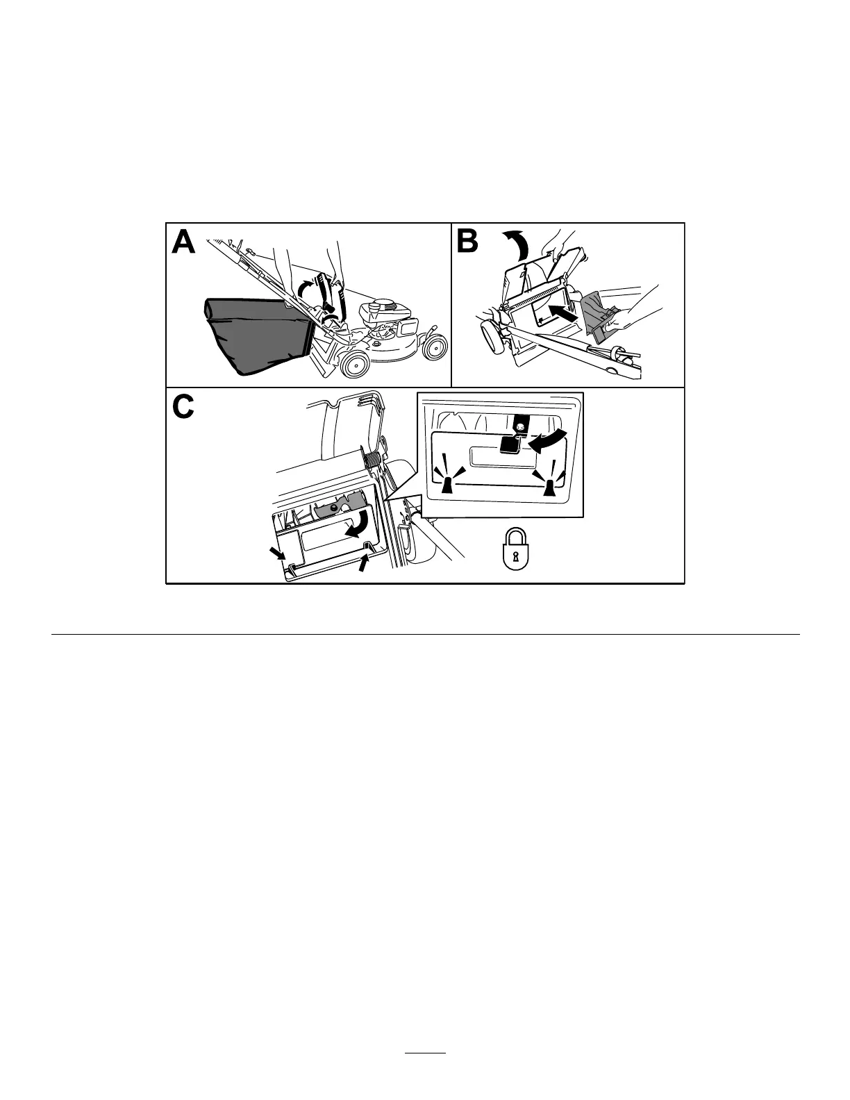 1.Raiseandholdupthereardeectorandliftthegrassbagupbythehandleoffthenotchesofthehandle