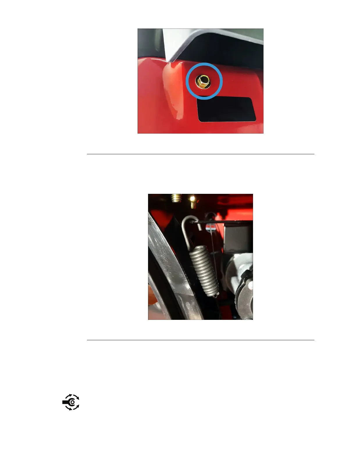 3.Installthe(1/4–20inch)screwsecuringthetransmissiontothedeck.Torque