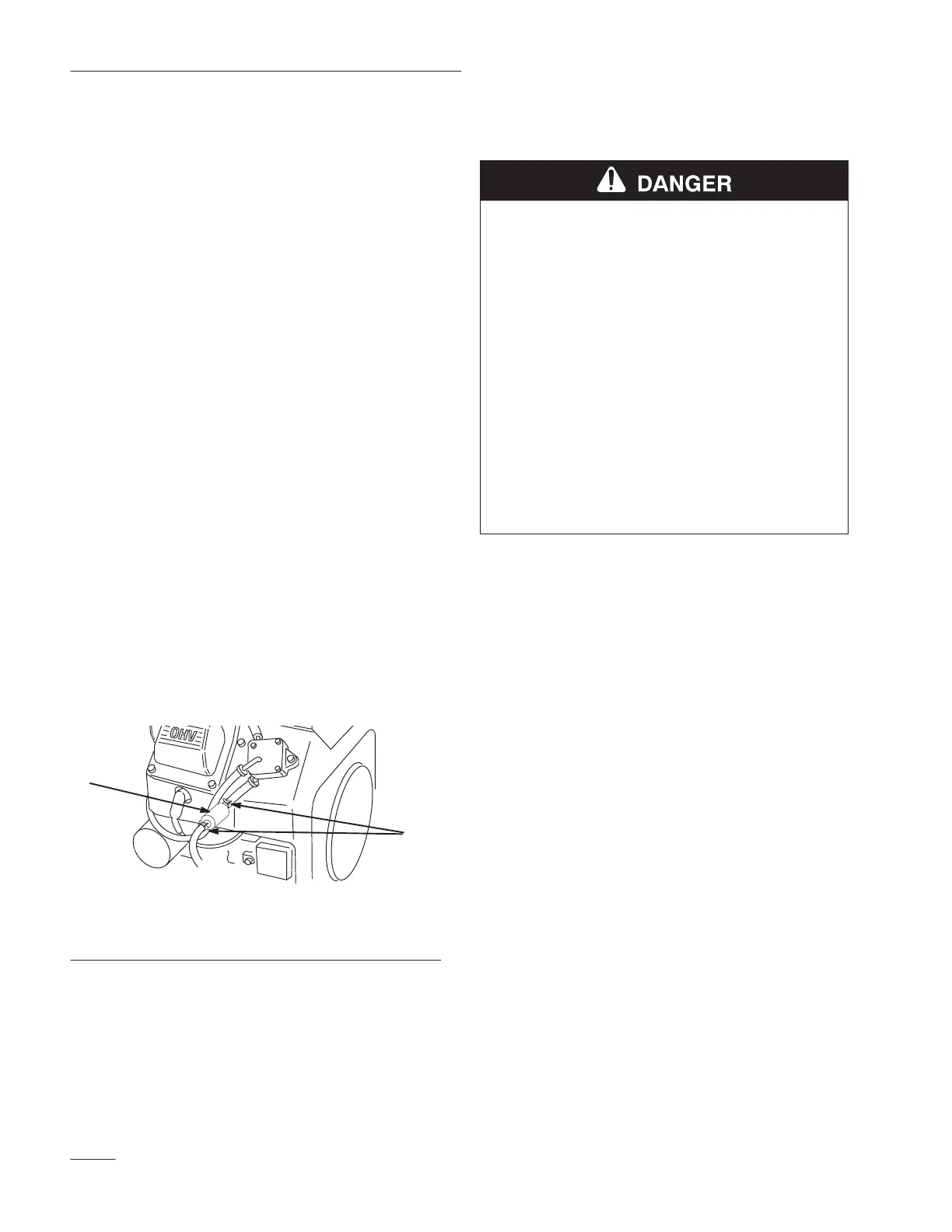 • Never drain gasoline near an open flame or