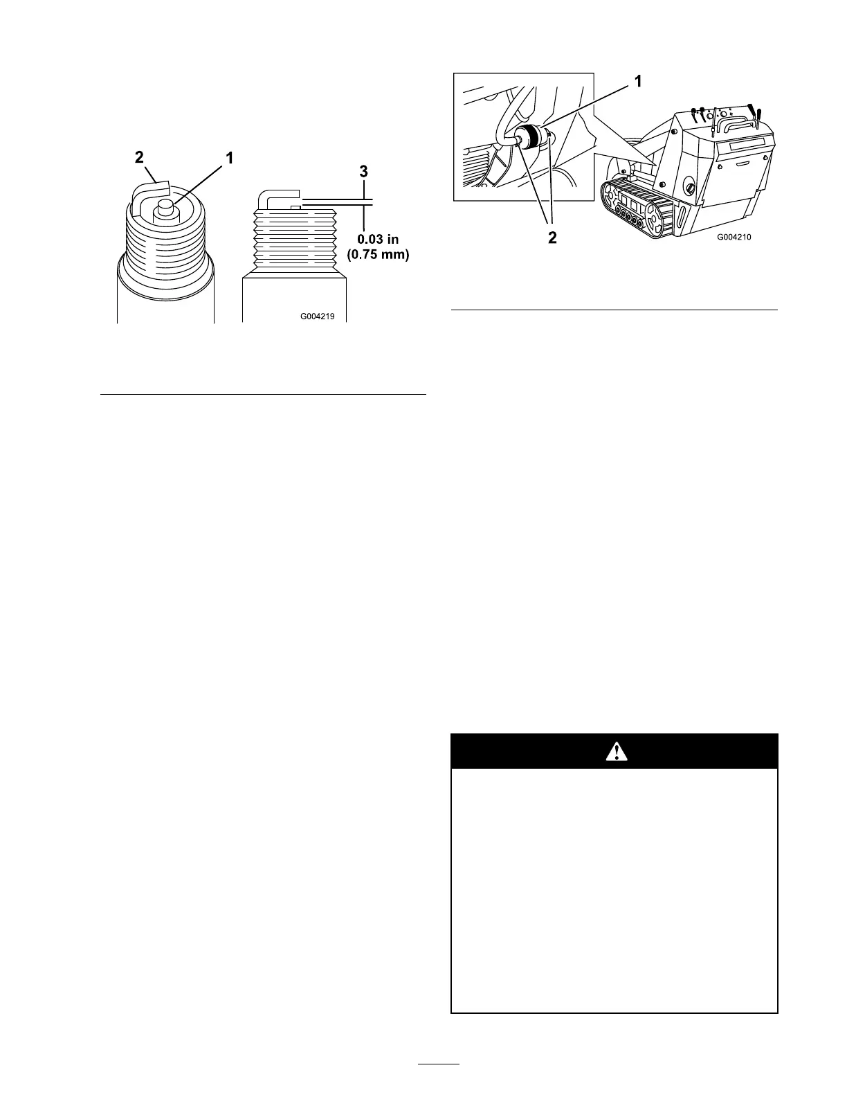 Important: Nev er clean the spar k plugs.