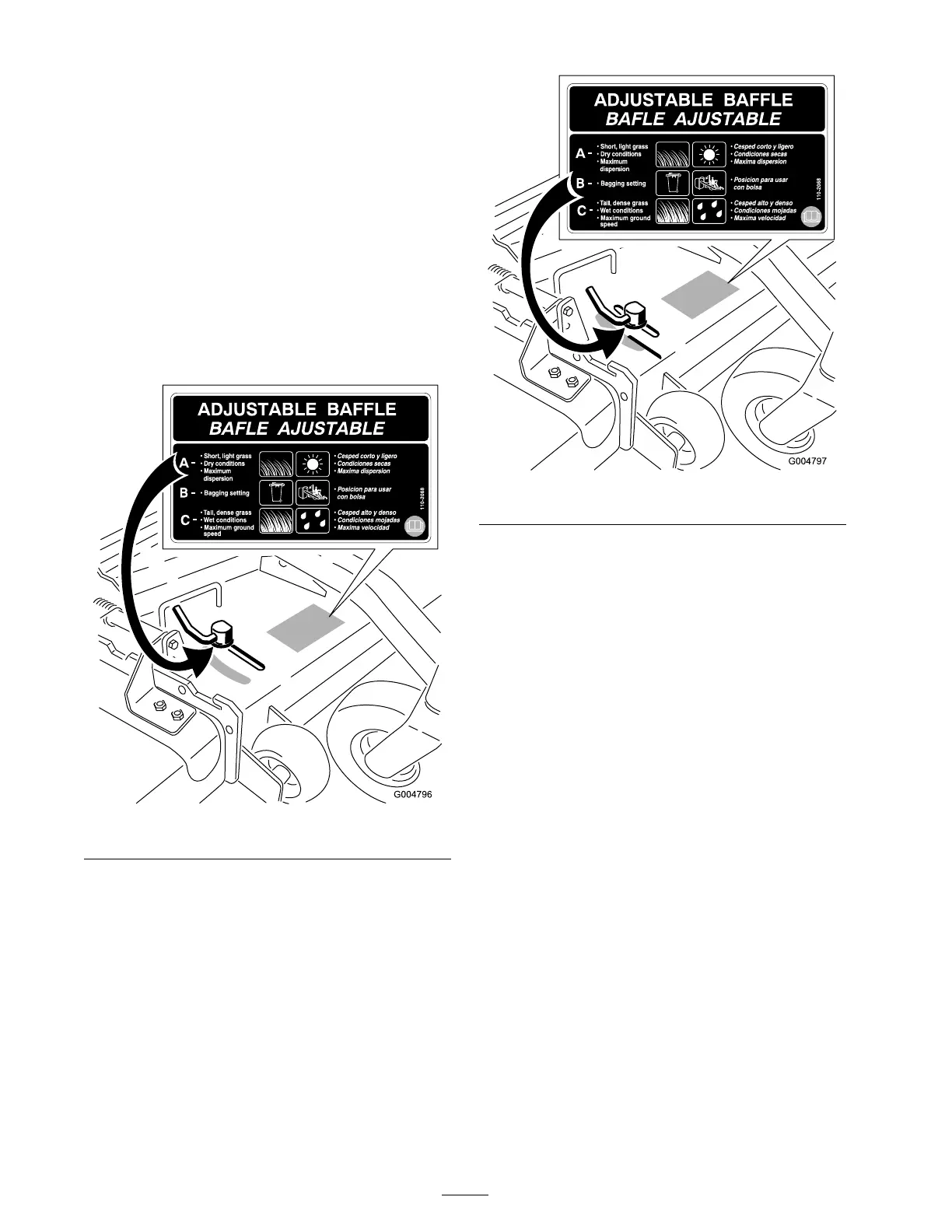 • Use for shor t, light g rass mo wing conditions .