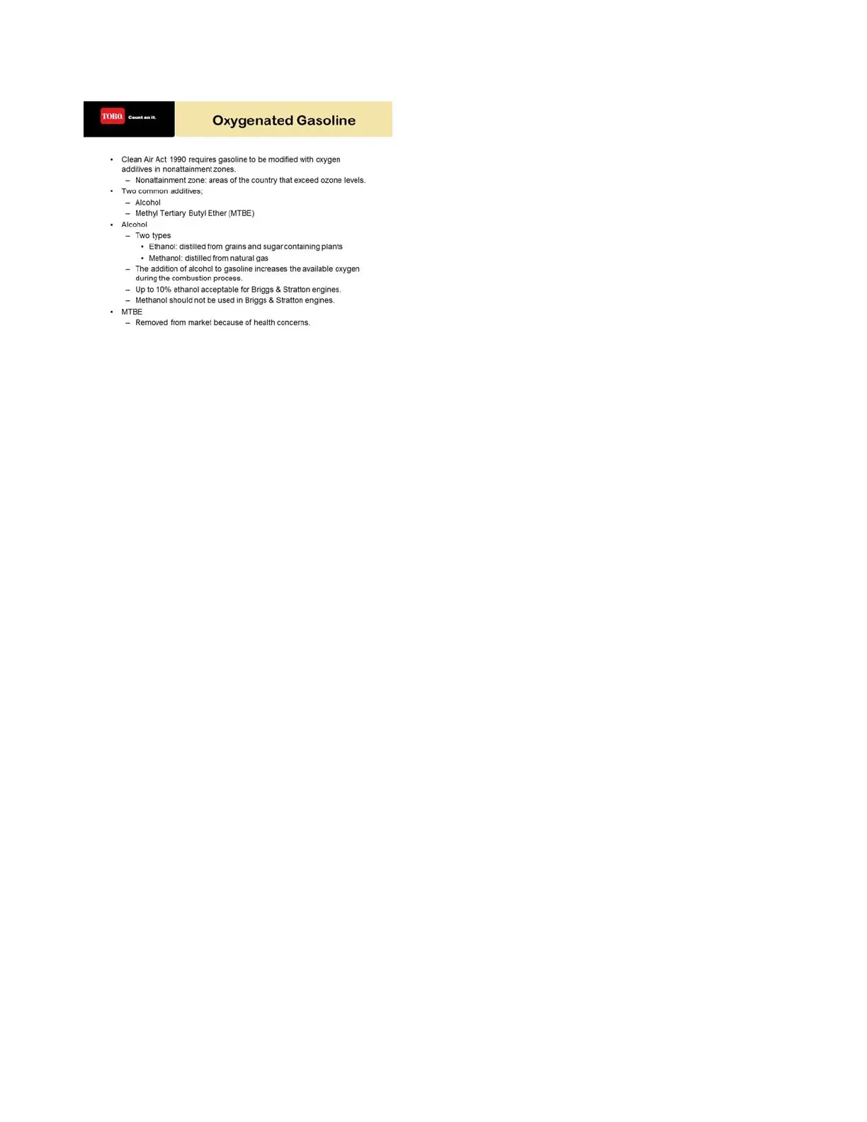 This deals with the “Oxygenated” fuel that are