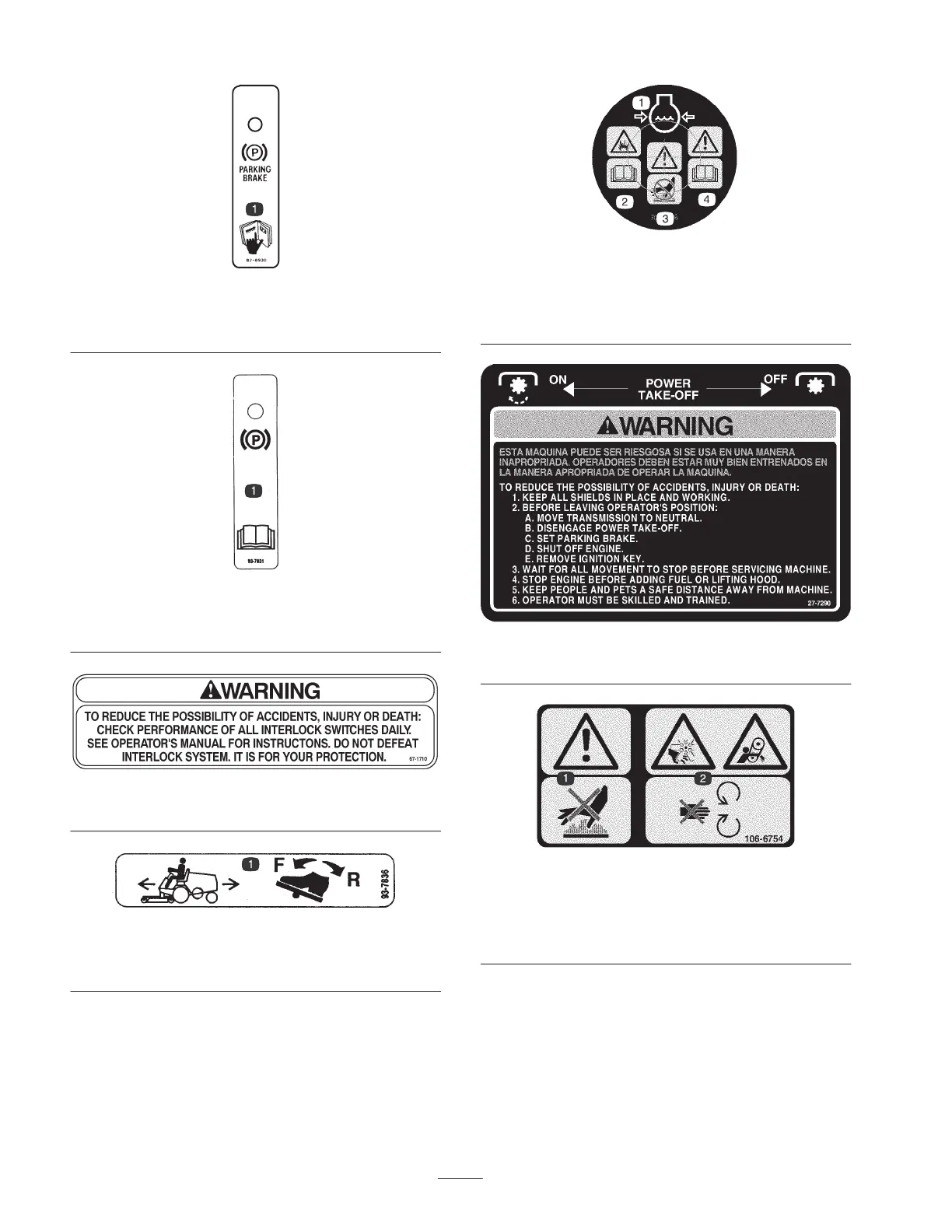 1. Parking brake—read the operator’s manual for further