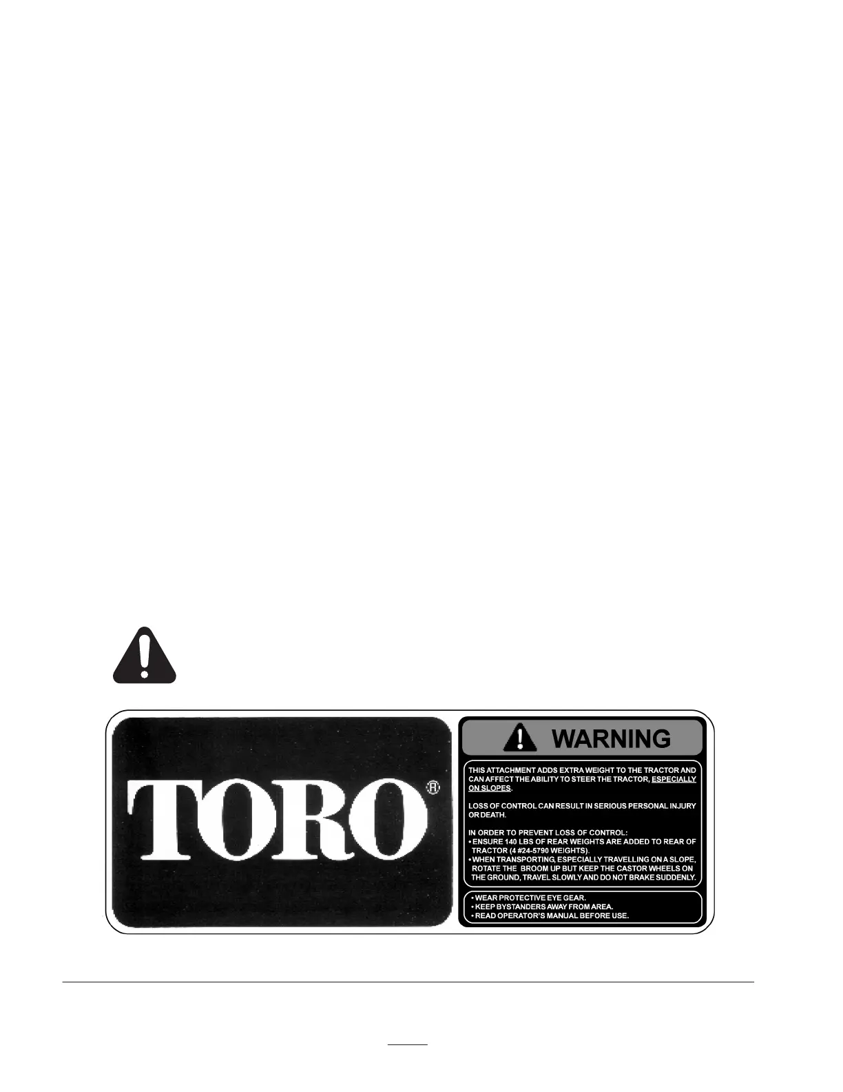 accessories to keep the machine all Toro. Never use