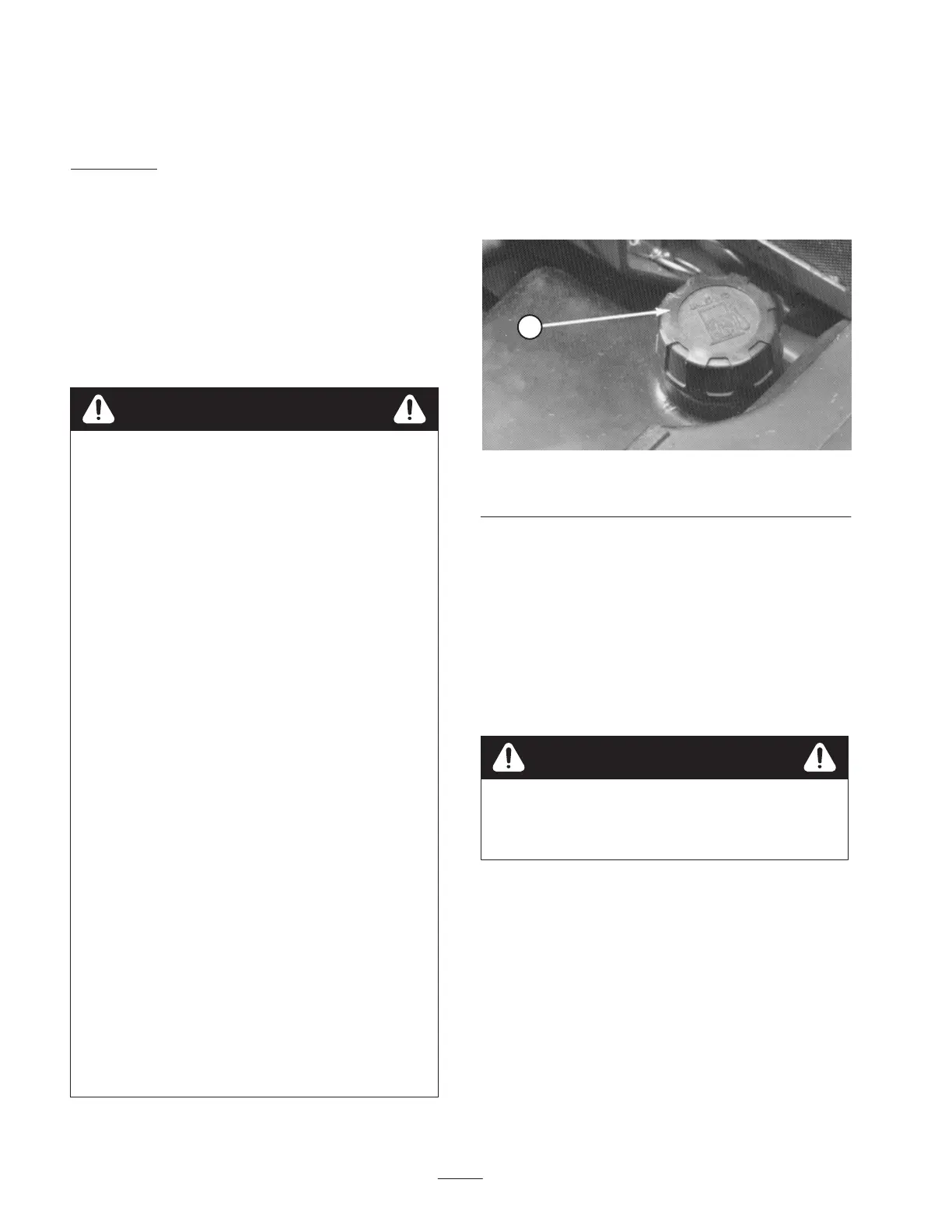 3. Install fuel tank cap tightly after filling tank.