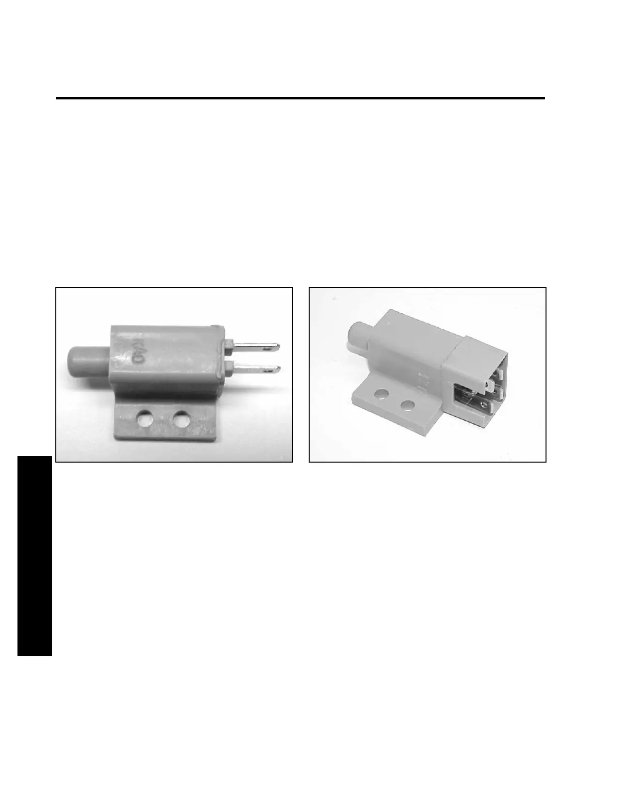 This single pole plunger type switch has two terminals.
