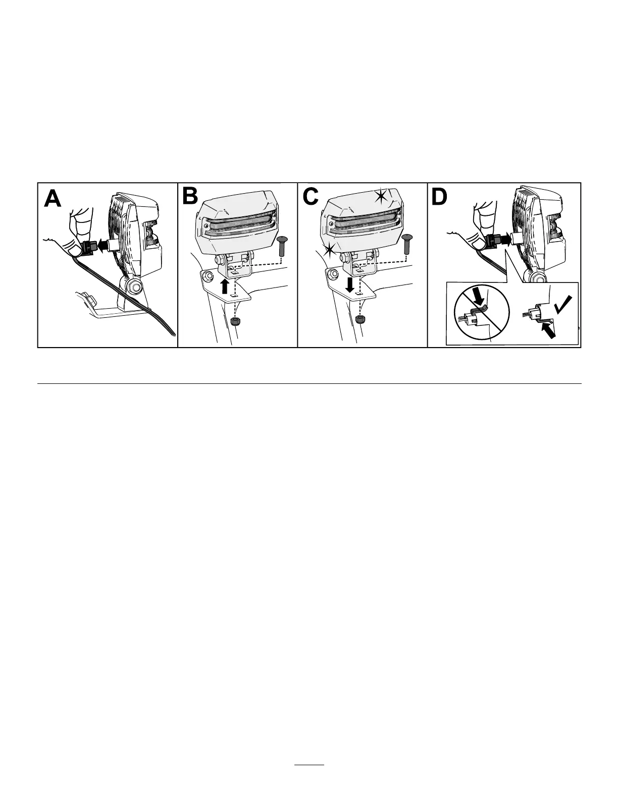 4. Insert the headlight wire straight into the back of the headlight until it is securely in place (D of Figure 38 ).