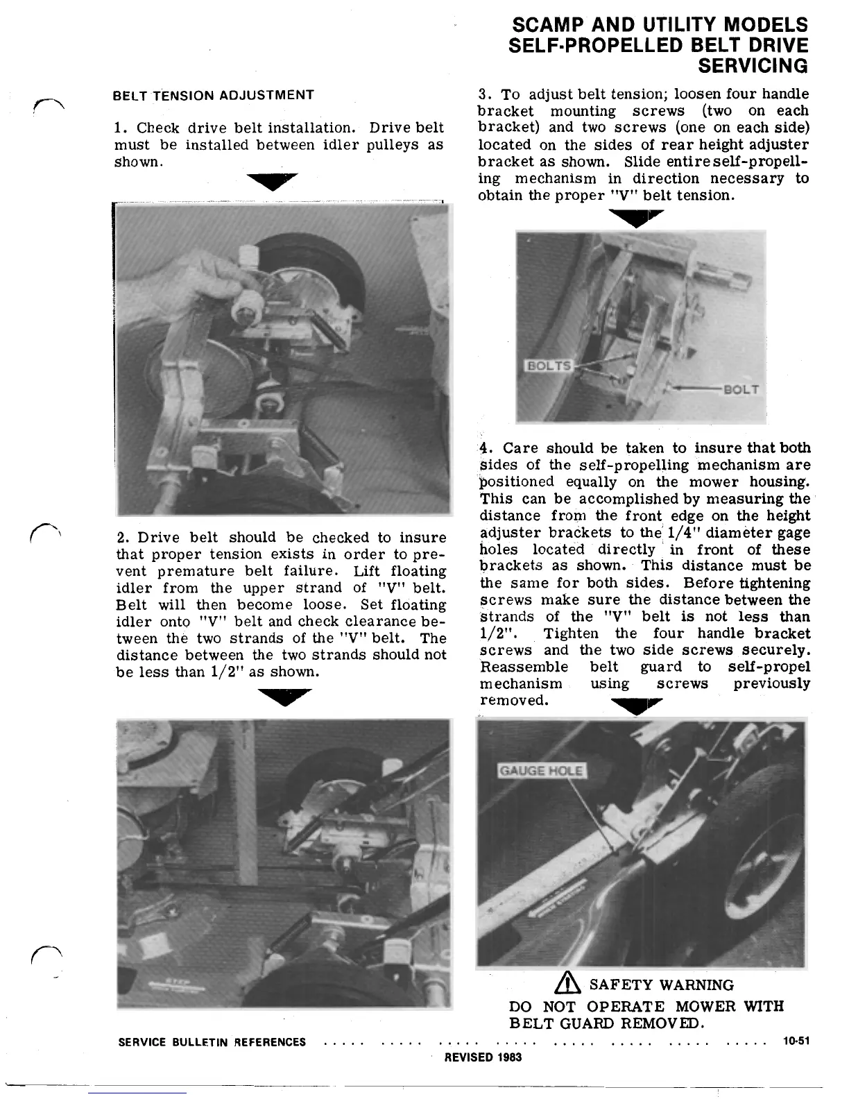 adjust belt tension; loosen four handle