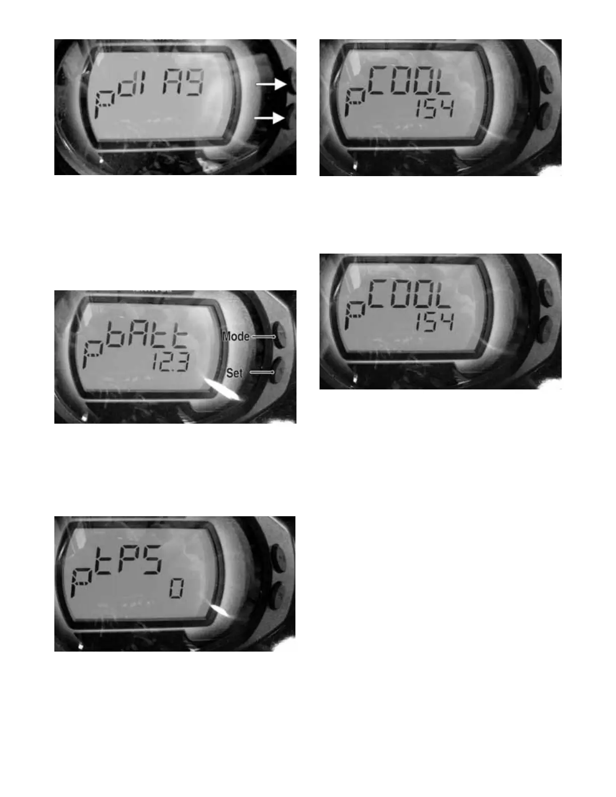 3. Cycle the display by depressing either the Set or