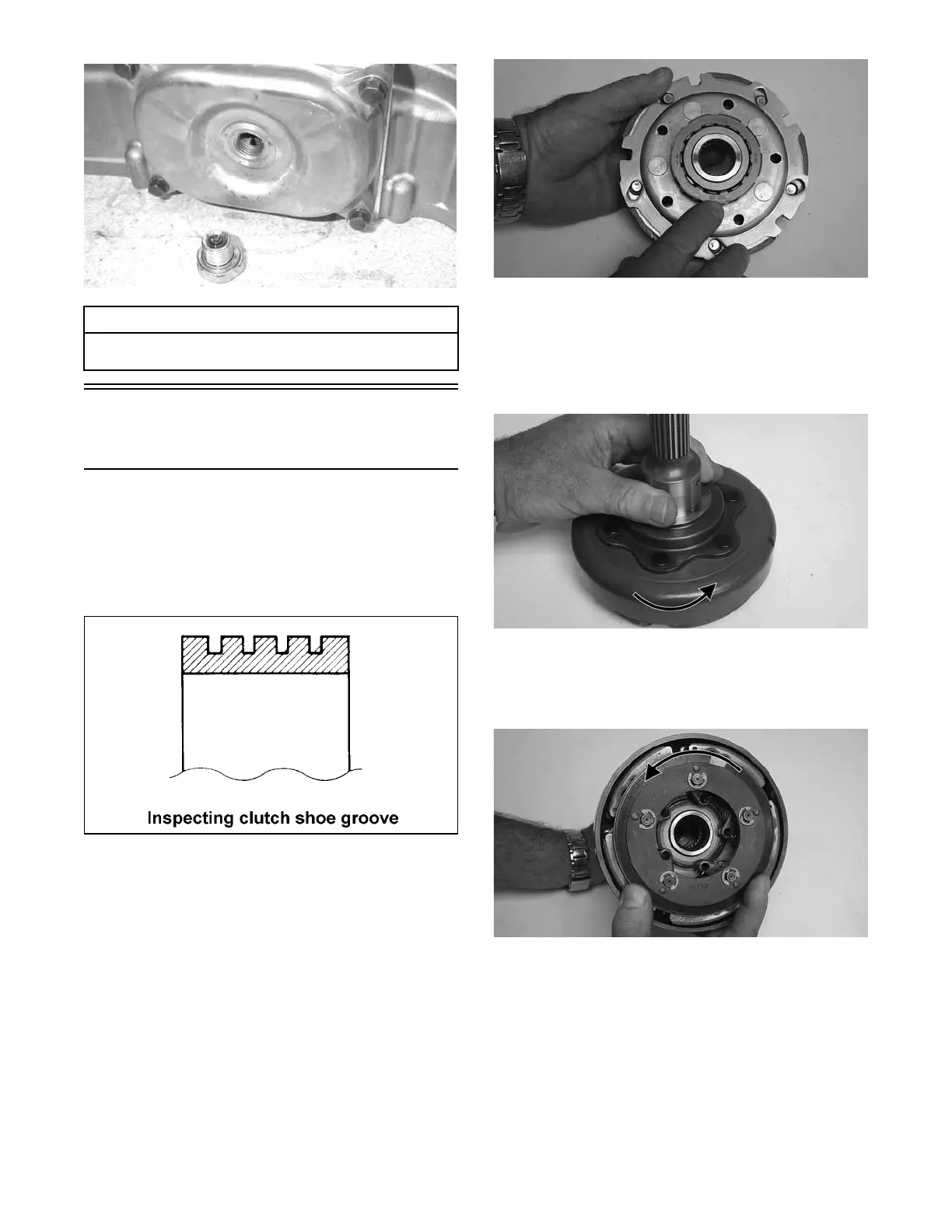 3. Check that the clutch shoe can only be rotated coun-