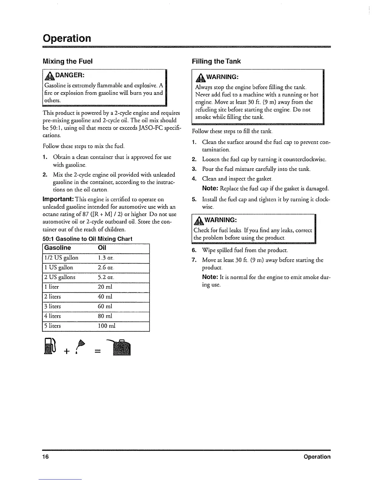 pre-mixing gasoline and 2-cycle oil The oi! mix should