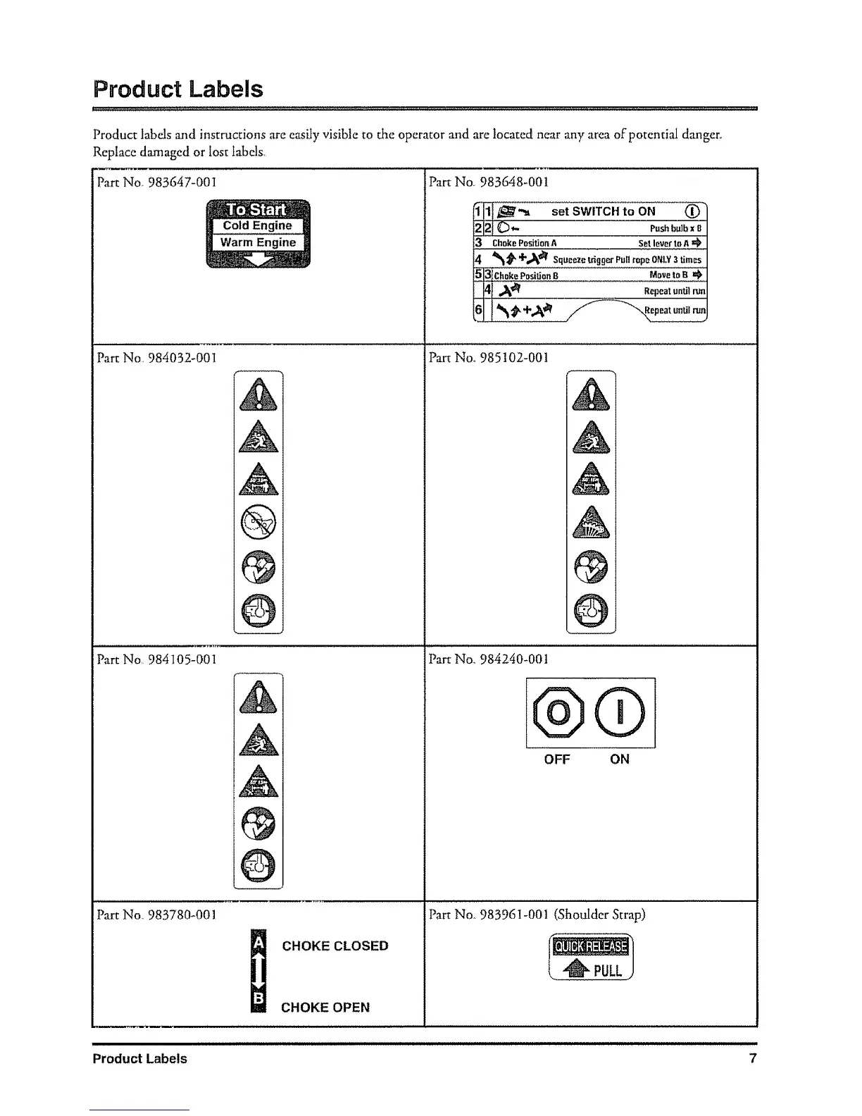 Product labds and instructions are easily visible to die operator and are located near any area of potential danger.