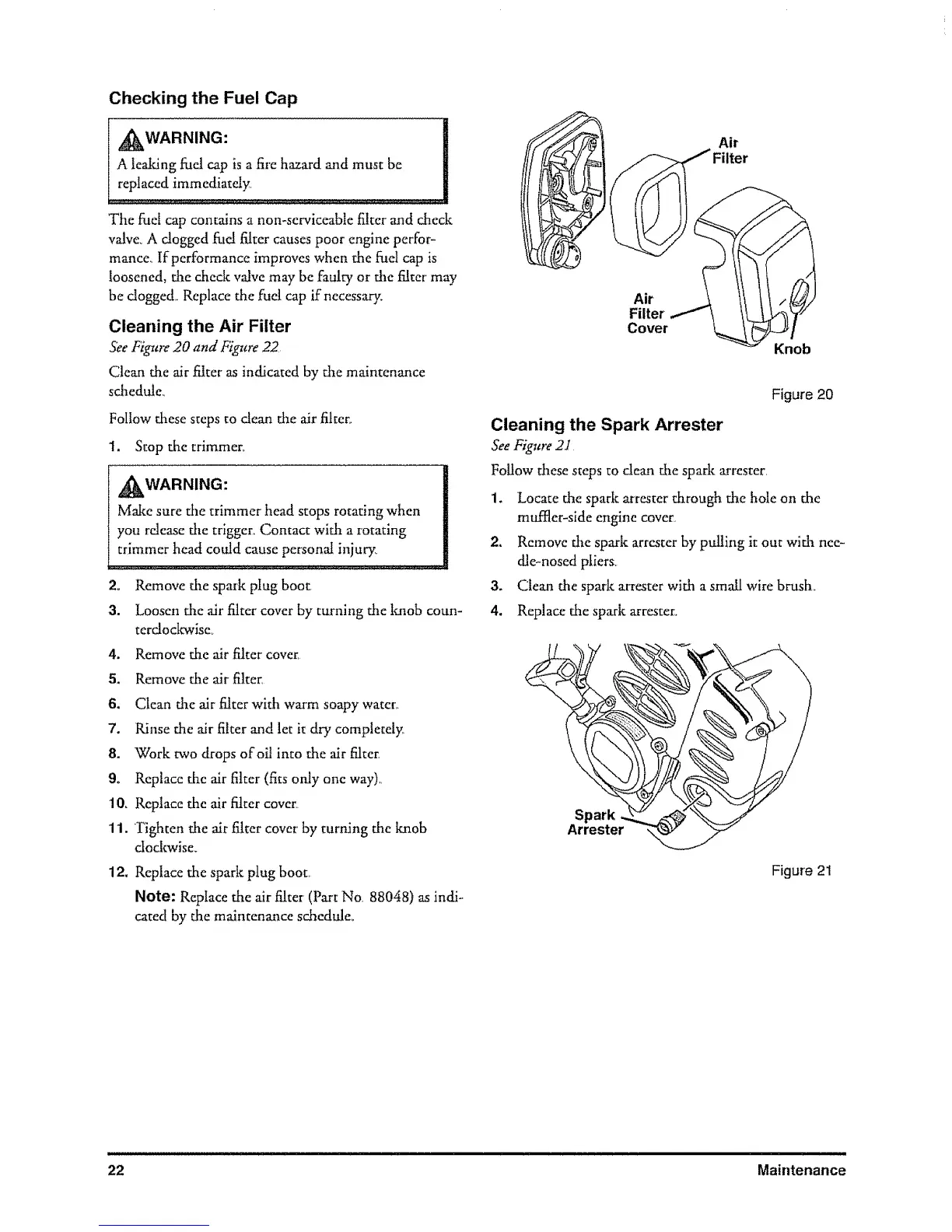 Toro 51934 - Checking the Fuel Cap; Cleaning the Air Filter; Cleaning the Spark Arrester