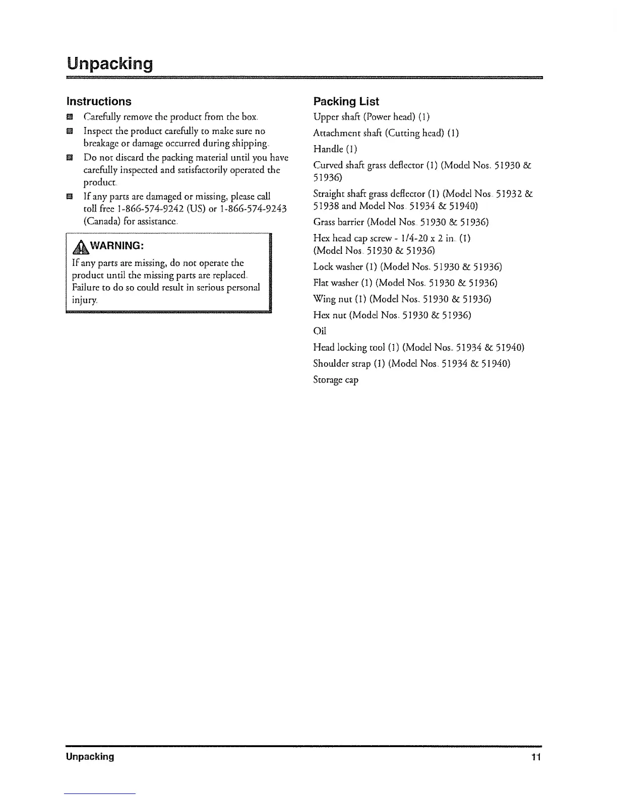 (Model Nos. 51930 & 51936)