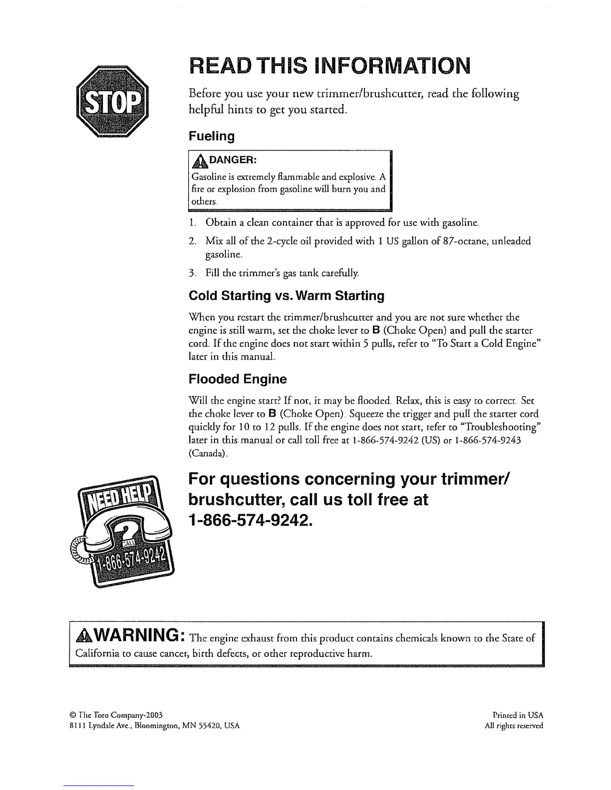 later in this manual or call toll f?ee at 1-866-574-9242 (US) or 1-866-574-9243