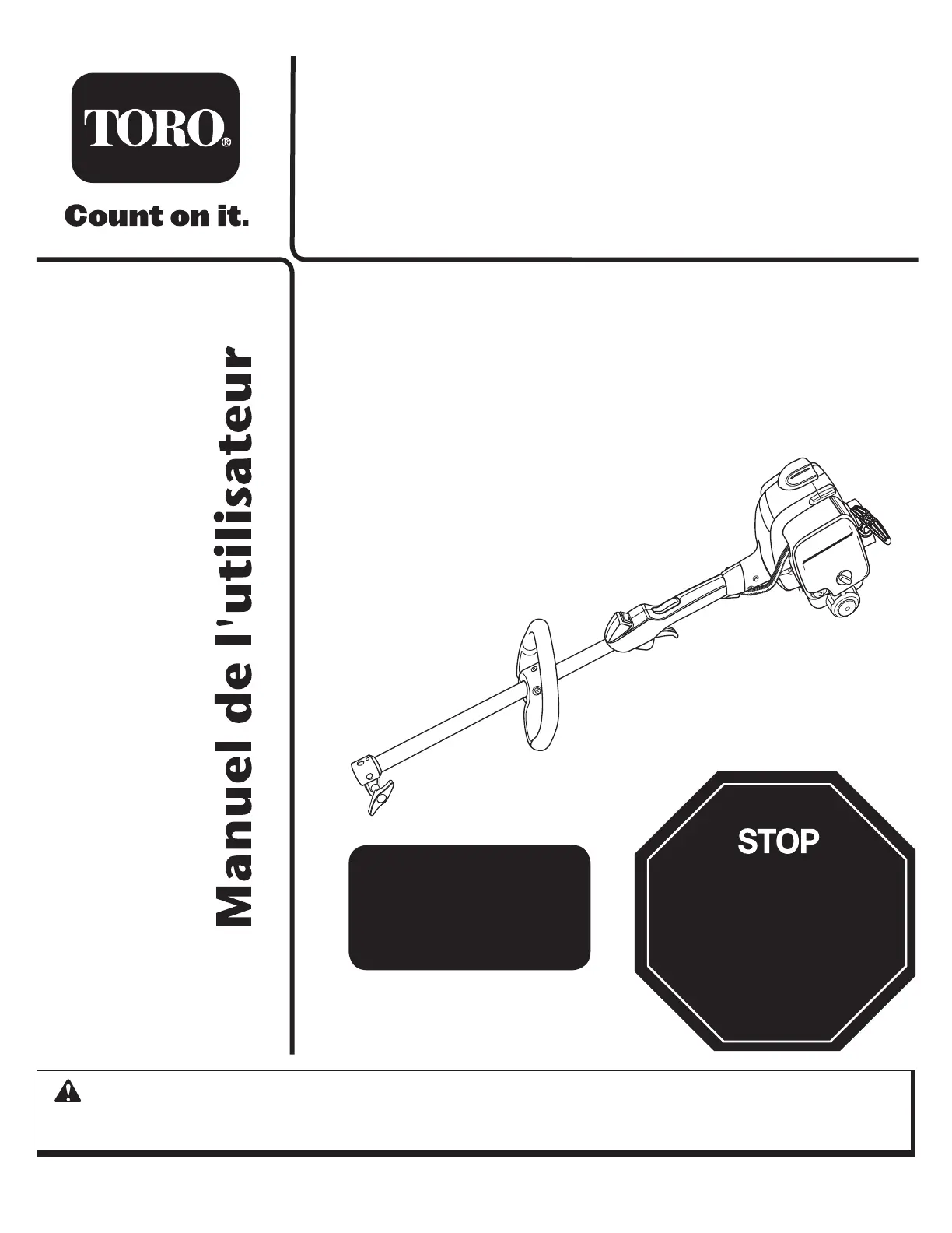 Pour réduire les risques de blessures, l’utilisateur doit lire et veiller à bien comprendre le manuel d’utilisation.