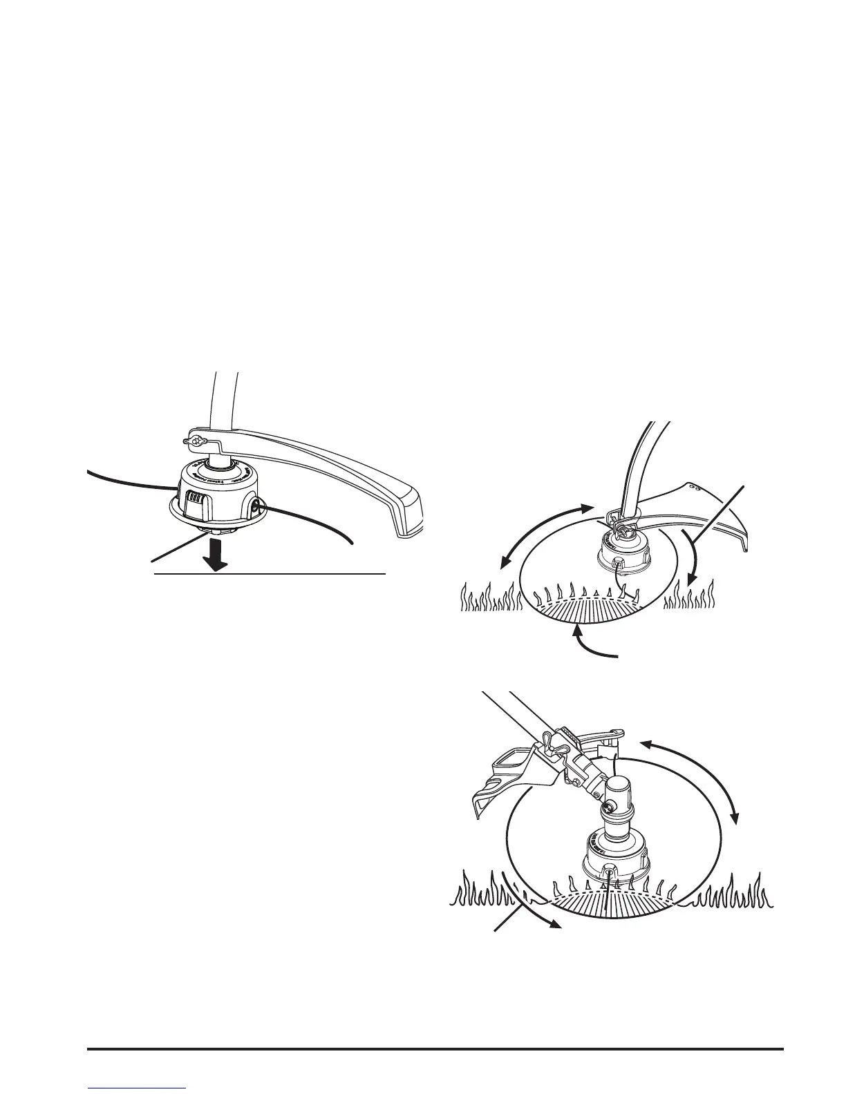 Note: The line trimming cut-off blade on the grass deector